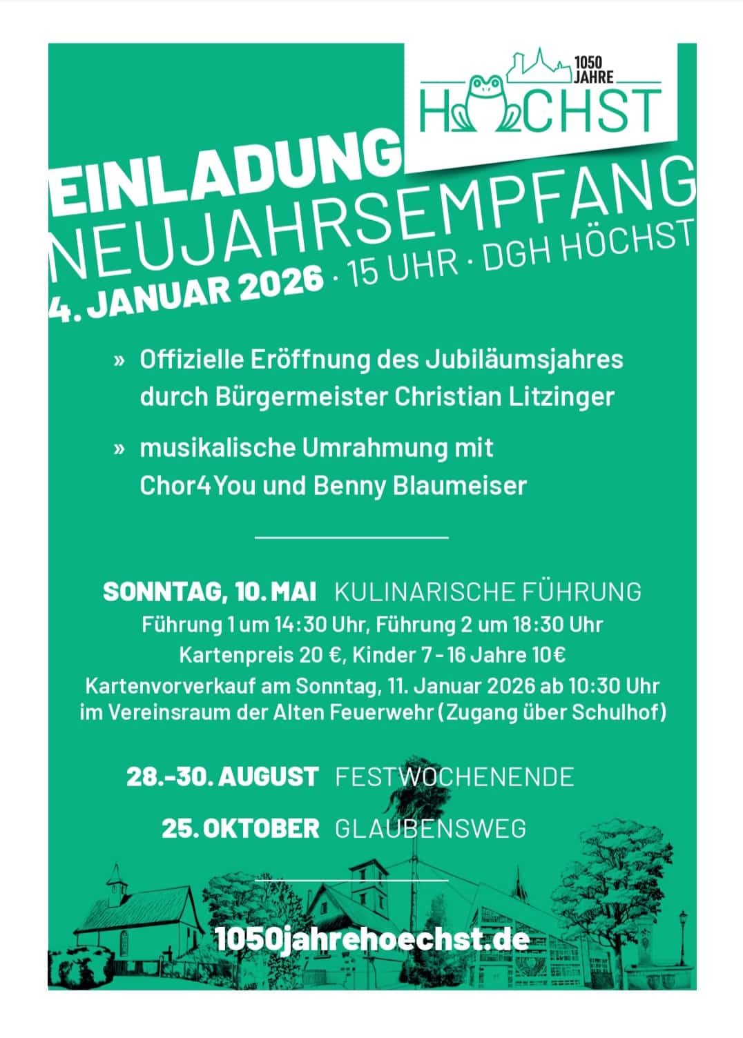 Im Jahr 2026 feiert der Kirchort und Ortsteil Höchst gleich drei besondere Jubiläen: